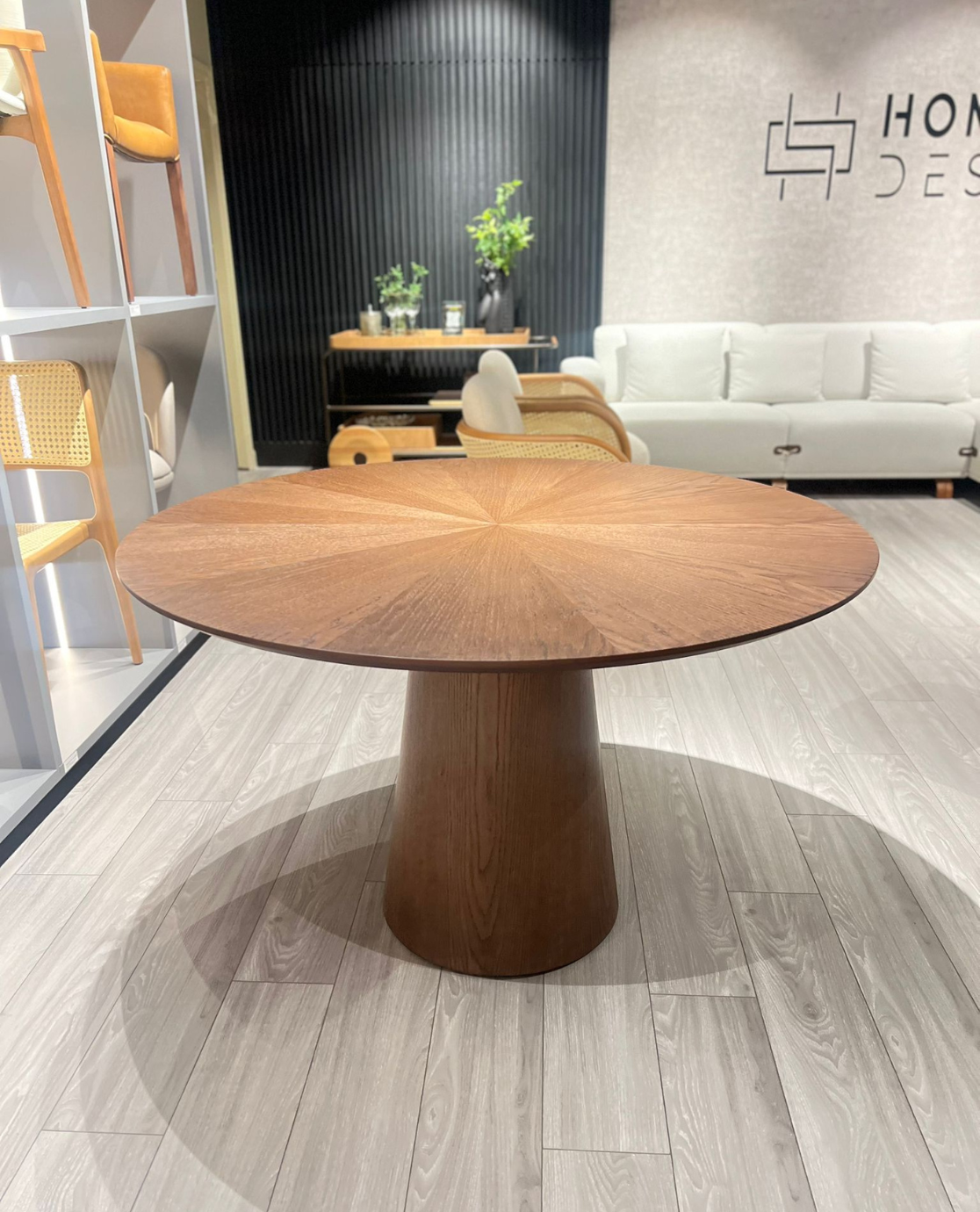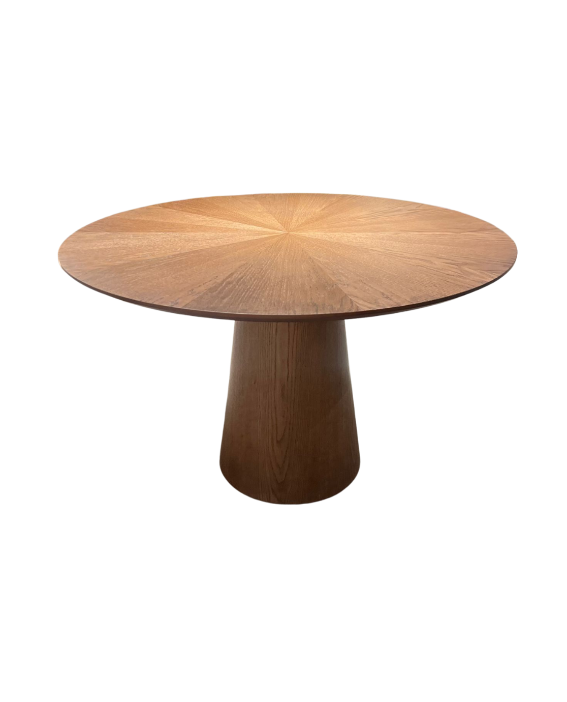 The Mona Dining Table elegantly brings sophistication to any space. With a top in wood and glass, Mona is visually pleasing both above and below the surface. Underneath, the conical base uses wood making it easy to match with your home's decor style, whether it be rustic or summery.