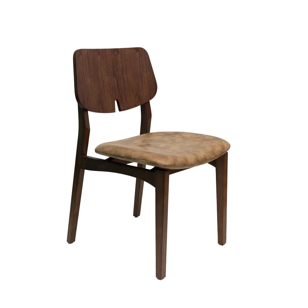 Handcrafted with sumptuous walnut wood, the Beth Chair boasts a luxurious upholstered seat in plush nubuck leather and a backrest in exquisite laminated wood, with a striking combination of comfort, elegance, and splendor.