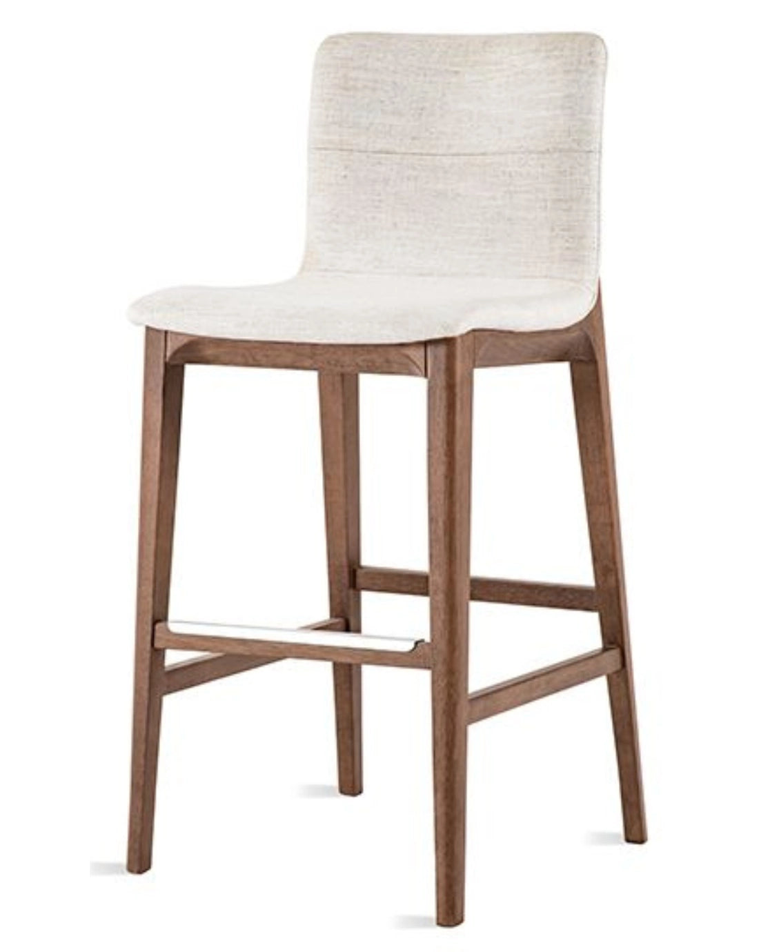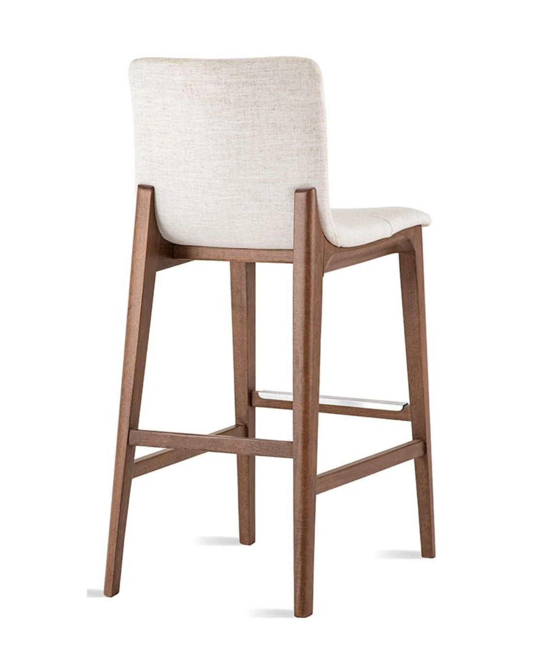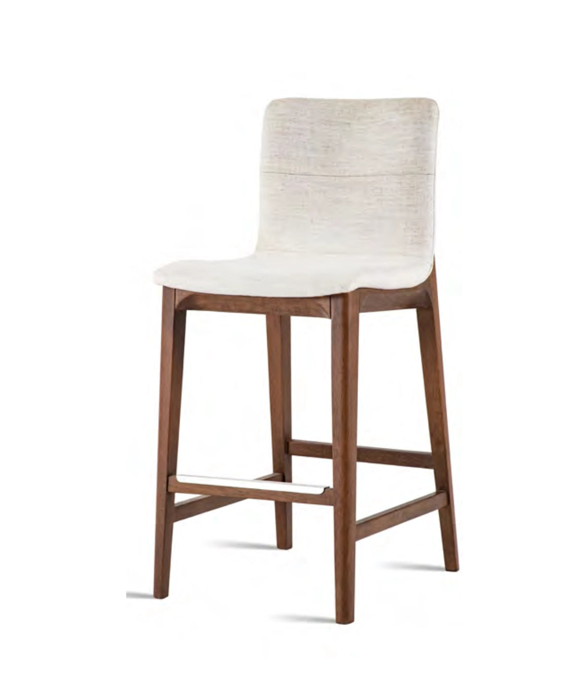 Introducing the exquisite Godan Bar Stool, crafted with a solid wood frame and adorned with a backrest of luxurious upholstered plywood veneer. The seat is also upholstered with the same high-quality veneer, ensuring comfort and style. Elevate any room with this elegant and exclusive piece.