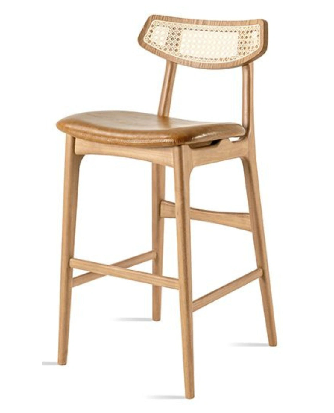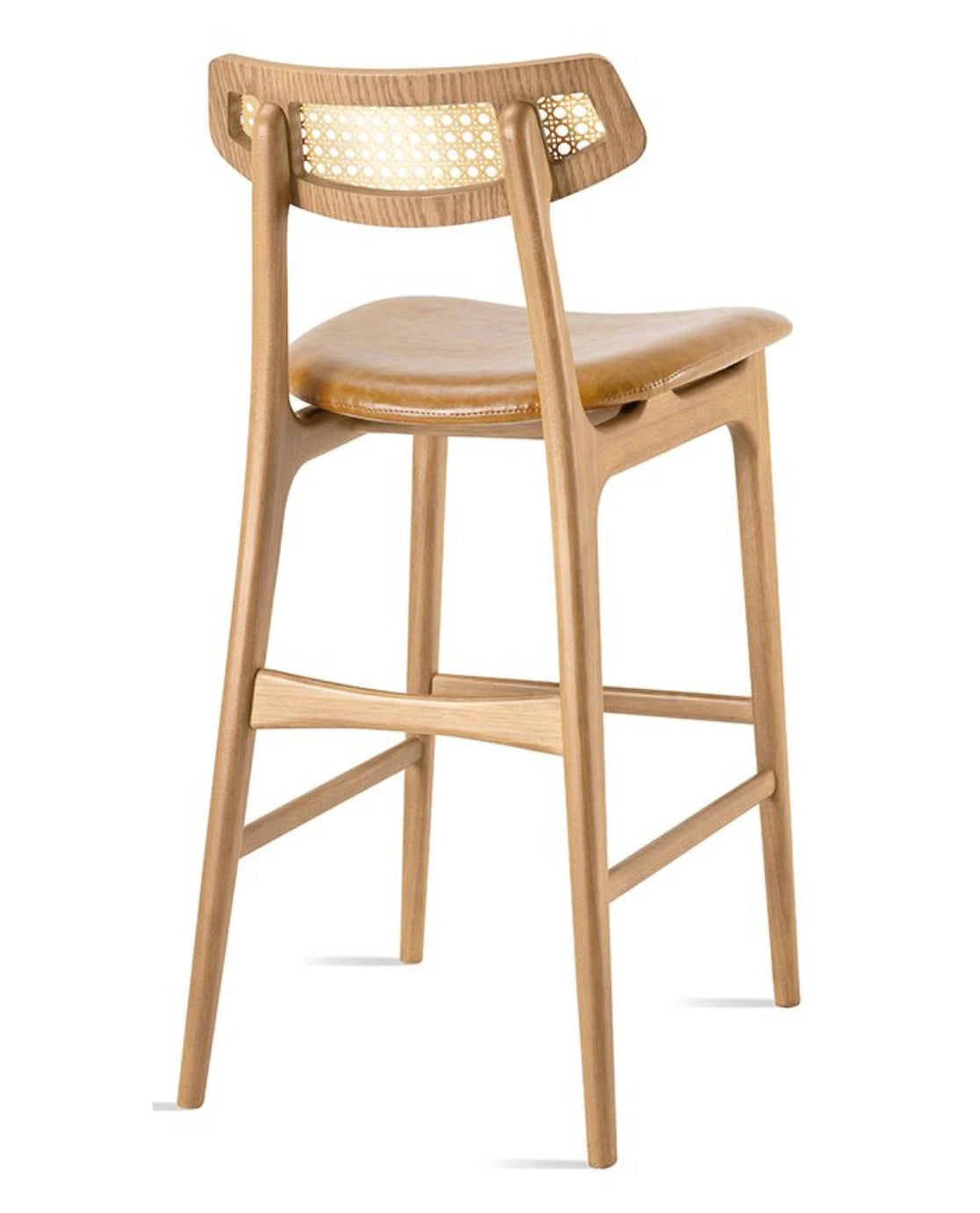 Elevate your home bar or kitchen counter with the Joana Cane Stool. Crafted with a solid wood frame and a beautifully detailed cane backrest, this stool exudes luxury and sophistication. The upholstered plywood veneer seat adds comfort and style, making it the perfect addition to any elegant and tasteful space.