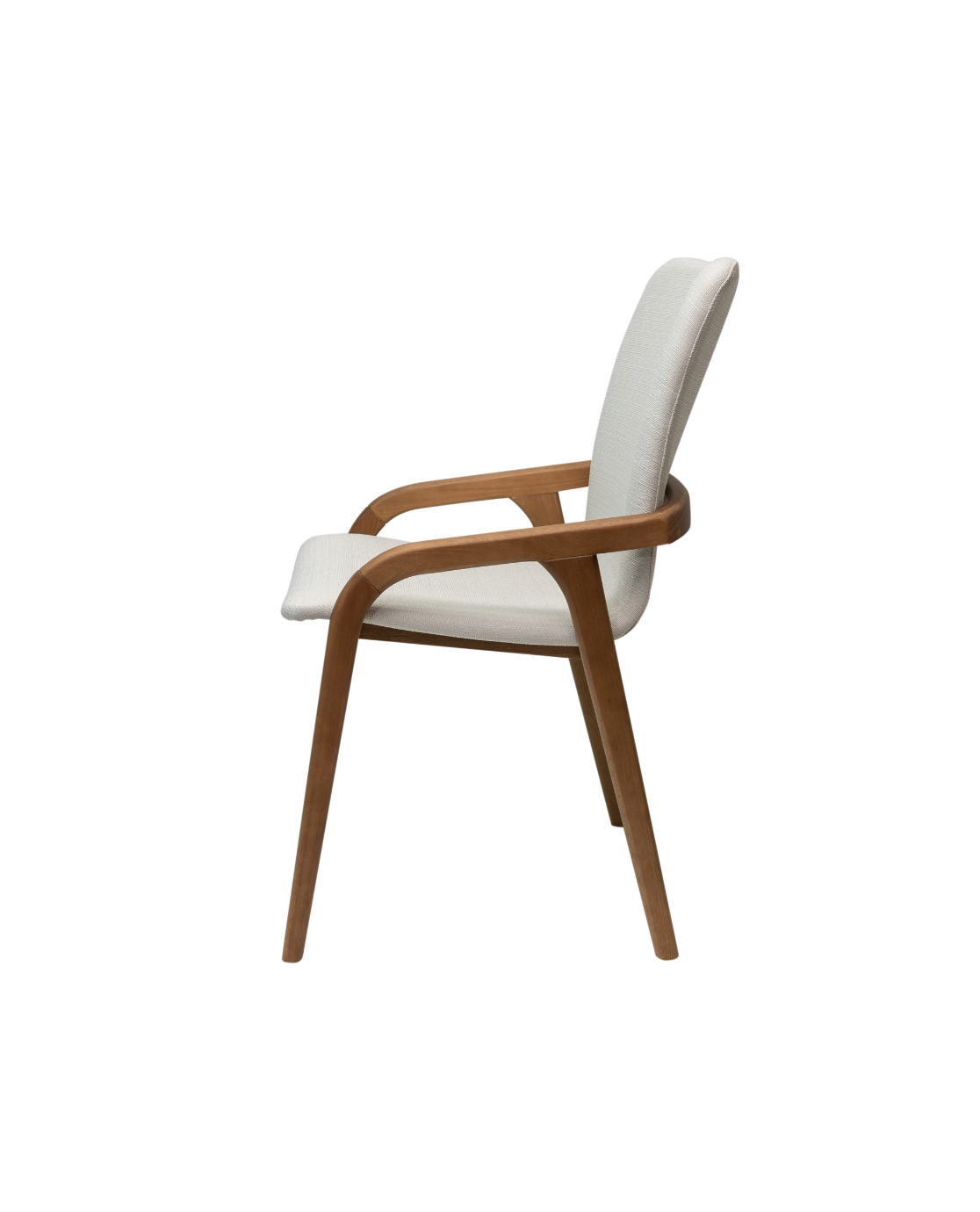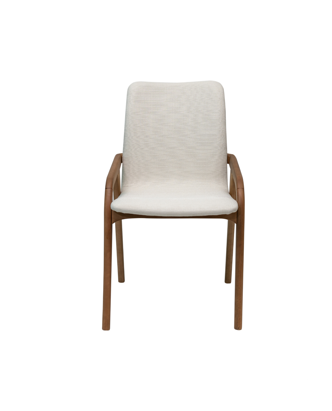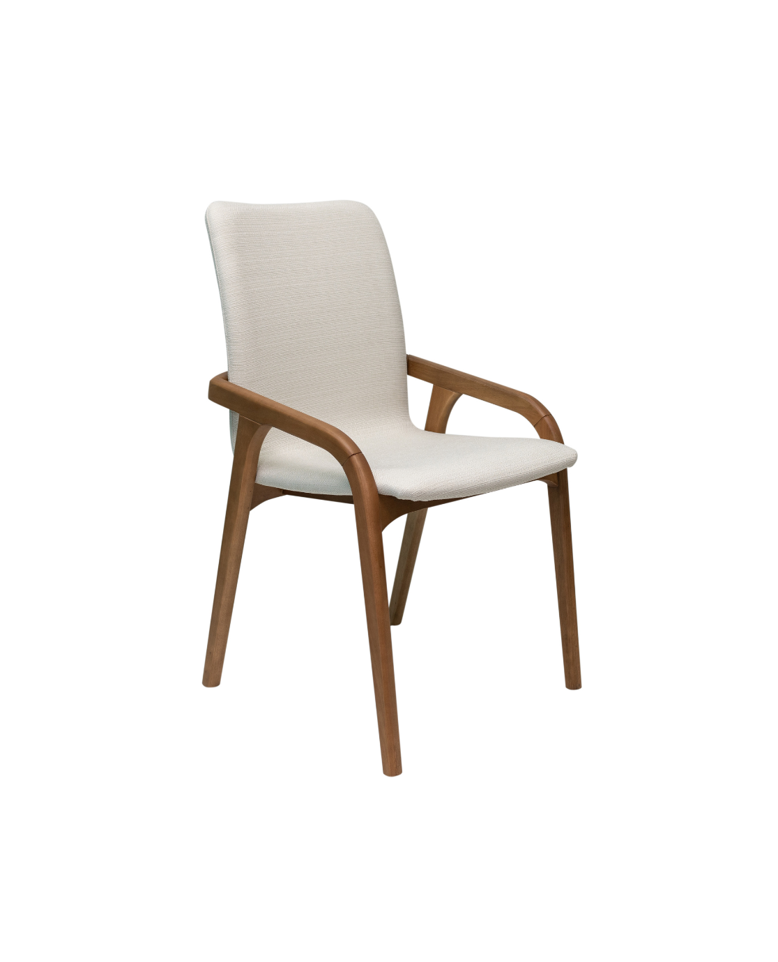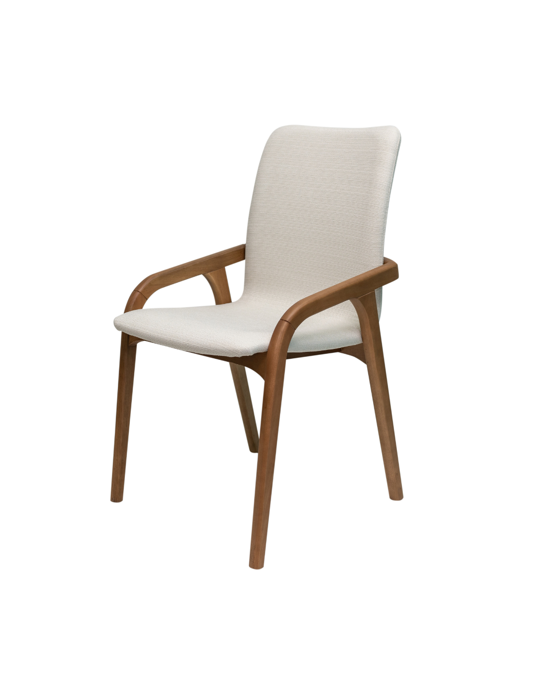 The Serena Armchair blends classic workmanship with contemporary aesthetics for a piece that is sure to stand out in any dining area. Its sturdy wooden legs form a firm foundation and the upholstered seat and backrest offer luxurious coziness. This armchair is a stunning mix of beauty, quality, and design, making it an ideal way to elevate your dining atmosphere.