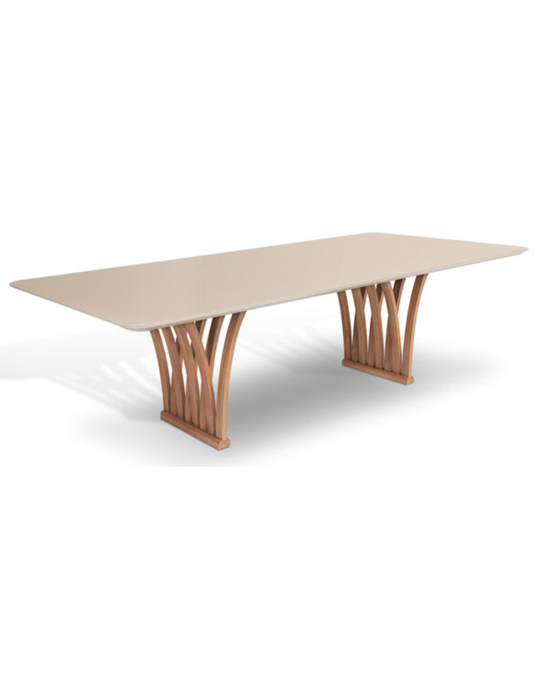 Experience the timeless beauty of the Tulipa Dining Table (Showroom) with your choice of luxurious finish options: - Select between the rich hues of Walnut or Caramel for the base color - Elevate the elegance with Walnut Veneer or the striking Matte Lacquer in Fendy color for the top finish - Admire the intricate details of the Lyptus Wood finish for the base - Add a touch of sophistication with Fendy Glass or opt for a clear mirror for the top.