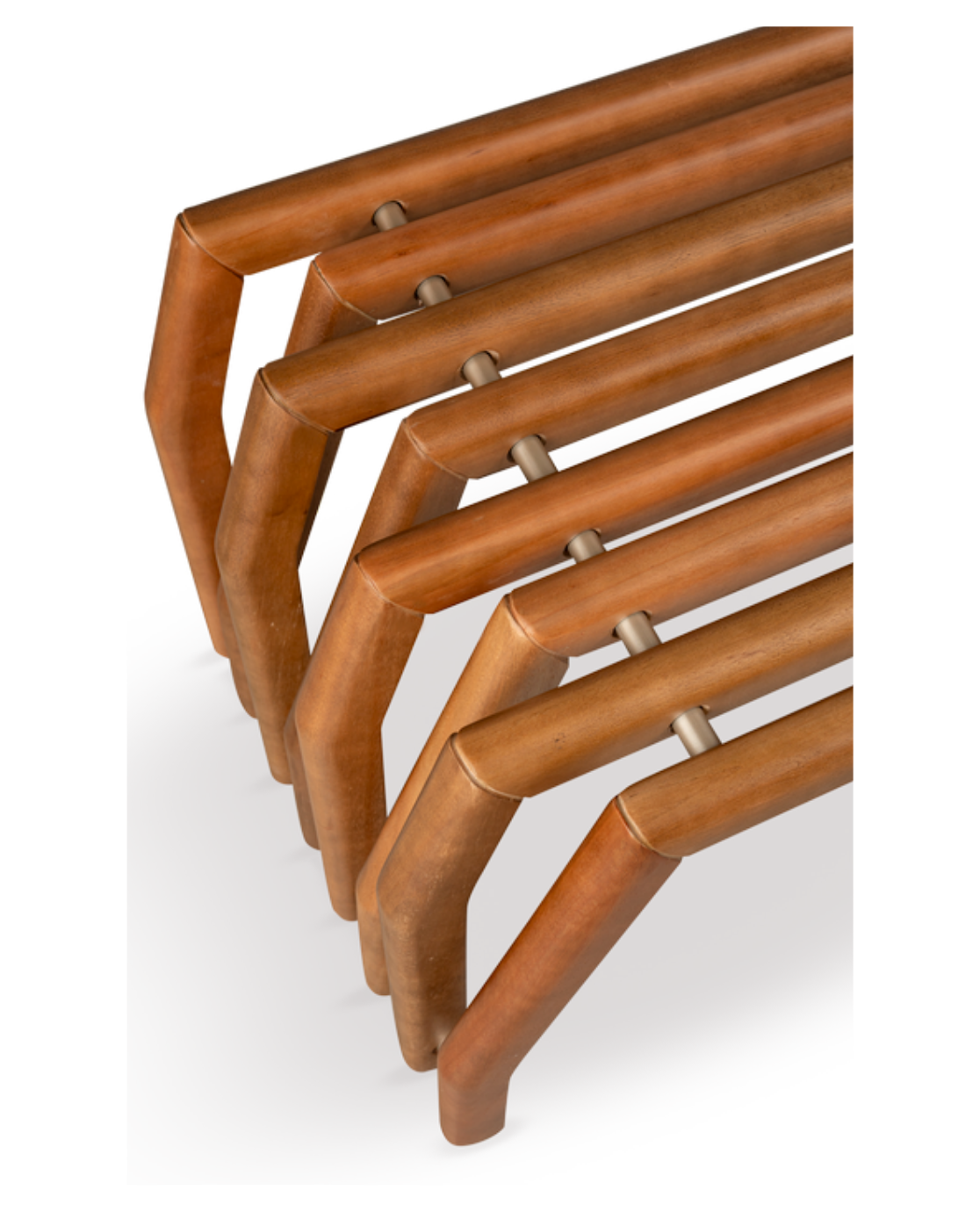 Indulge in luxury with our Videiras Bench, featuring a stunning walnut-colored lyptus wood finish paired with a matte metallic steel finish in champagne. Elevate your space with elegance and sophistication while enjoying the durability and style of this premium piece.